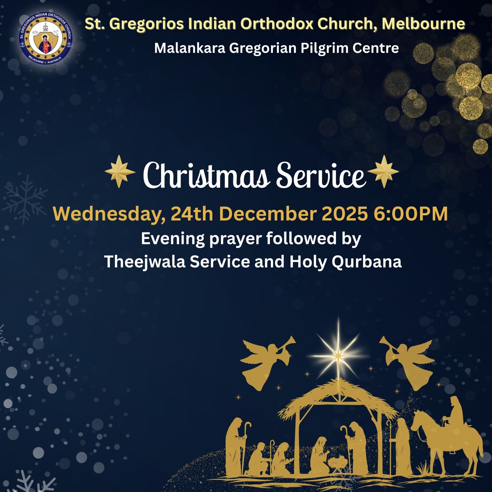 The Christmas Service will be held tomorrow, Wednesday 24th December, with Evening Prayer commencing at 6:00 PM, followed by the Theejwala Service and Holy Qurbana.