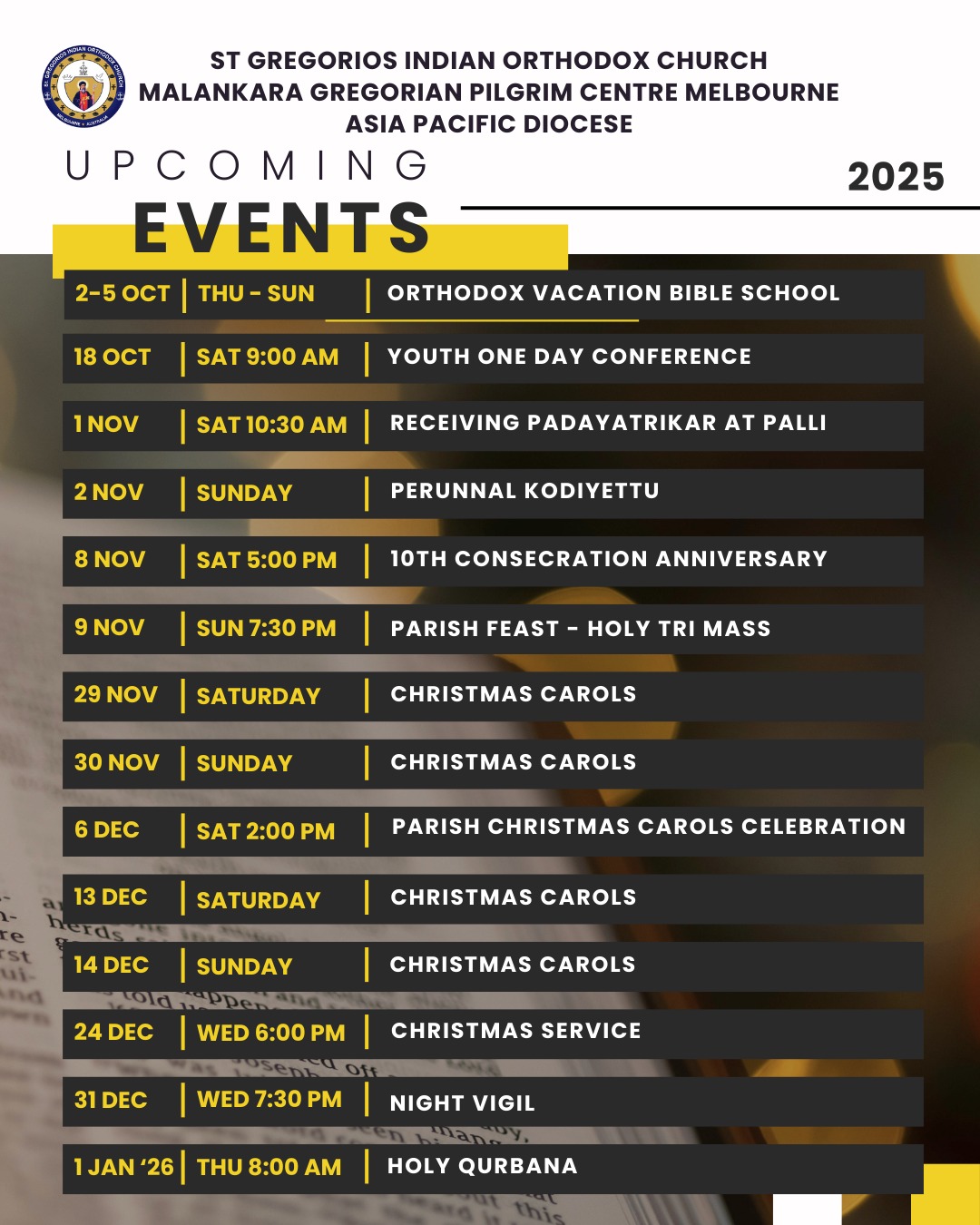 We earnestly request all parishioners to take note of these dates, adjust your schedules accordingly, and ensure your presence and active participation.